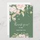 Vita och pastellrosa rosor ram för ett tackkort. Dubbelsidig partiskylt med vita och olivgröna omvändbara färger.