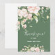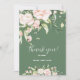 Vita och pastellrosa rosor ram för ett tackkort. Dubbelsidig partiskylt med vita och olivgröna reversibla färger.
