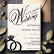 Elegantens svarta och vita bröllopsinbjudan med glansig diamant ring. Anpassa den med din händelseinformation.