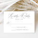 Minimalistiskt, modernt bröllop OSA-kort med ditt OSA datum och anpassningsbarna godkänner/avvisar formuleringen. "Kinly Reply" visas i ett svart calligraphy-skript. Den vita bakgrunden kan ändras till en valfri färg. Designad att samordna med vår moderna elegance bröllop-samling.