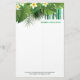 Moderna och söta vita, ömtåliga blommor och grönt exotiska löv. Valfritt monogram