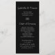 Ge dina gäster i giftermål-ceremonin och tidslinjen med elegant White Orchid på Black Bröllopsprogram. Det botaniska bröllopsprogrammet i den söt anpassningsbarna har ett blommigt foto av vita blommar av falaenopsis eller blomma på stjälken med svart bakgrund.