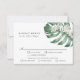 Ett unikt vackert kort för tropiska bröllop OSA som innehåller måltider för 3 objekt. Utformningen har delikata vita orkidéer och ett vackert Monstera löv i mjuka vattenfärger. Utformningen är både enkel och elegant med ett minimalistiskt utseende som påverkas av det tropiska botaniska inslag. Svarskortet i bröllop är ett fantastiskt val för kustnära bröllop, destinationsbröllop eller till och med bröllop som använda är ett magiskt tropiskt tema. Anpassa textmallen med önskat svarsdatum och upp till 3 måltider för dina gäster.