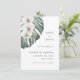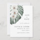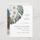 Ge liv åt er tropiska drömvision om bröllop med detta unikt vackra uttalande om bröllop spara datum. Den har en trio vita orkidéer med elegant och ett vackert Monstera löv i färgade vattenfärger placerade på framsidan av kortet. Utformningen är både enkel och elegant med ett minimalistiskt utseende som påverkas av det tropiska botaniska inslag. Denna utformning är ett underbart val för bröllop vid kusten, för destinationsbröllop eller till och med för bröllop i staden som användor ett magiskt tropiskt tema. På baksidan av kortet finns en textmall som du kan använda för att inkludera det foto du vill ha. Anpassa textmallen med informationen om bröllop tillsammans med ett porträtt-foto på baksidan.
