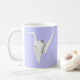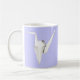 Fotografi av en vikt vit papper kran på anpassadets bakgrund färg. Bild tryckt på båda sidor om mugg.