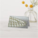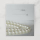 Visa gästerna på deras platser vid din giftermål-mottagning eller möhippa party med elegantens vita pärlor Bröllop-mappade platskort. Eskort från anpassningsbar stil med tält har ett nära foto av ett vitt pärlhalsband med lätt grått-bakgrund.