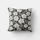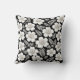 Stora vita blommor med pärlfärgade centra kontrasterar vackert mot en svart bakgrund, omgivna av invecklade ormbunksliknande blad