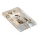 Anpassa söt Faux White Pearl och Diamond Buttons Bröllop spara datum Flexible Magnet med namnen av bruden och brudgummen och deras ceremoniedag i giftermål. I elegant personligt bröllp-behålla innehåller datumets böjbara magnet ett foto av vintage tittar pärlor och diamantknappar med vit satinbakgrund och anger en klassningston för kommande nuptialer.