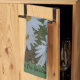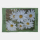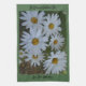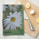Några abstrakta vita prästkragar på en grön kökshandduk Texten lyder "Jag skulle hellre vara i trädgården". Texten är dock anpassningsbar och kan ändras.