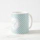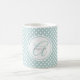 Denna specialdesignade kaffemugg har ett klassiskt vitt prickmönster som aldrig går ur stil. Designen inkluderar en stor monograminitial överlagrad med ditt fullständiga namn. Det är ett fantasifullt val för en födelsedagspresent, en examenspresent eller din egen morgontecopp.