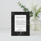 Denna moderna partiförfrågan är perfekt för ditt vinterevent. Den har en snygg svart bakgrund med bleka vita snöflingor. Längst ner finns en vit cirkel med din monogram. Det finns också prickiga cirkeldesigner i det övre vänstra hörnet och på höger sida. Din text hamnar i mitten.