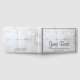 Den vackra gästen bok kommer att som en speciell minnesstund i din bröllopsdag. Den har en enkel design med ett modernt svart skript över en bakgrund av vita blommor och hjärta som reflekteras med vågar och moppel. Anpassadet text gör att du kan skriva parets namn, datumet bröllop och texten i ryggraden.