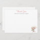 Vacker och fantasifull platt tack-kort för bröllopsfest med en akvarellillustration av vita regnstövlar fyllda med rosa peonys, täckta med ett vitt paraply. "Tack" står i rosa kursiv stil. Personifiera med ditt framtida efternamn.