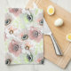 Vita, rosa blommor. kökshandduk