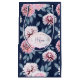 Vita, rosa blommor på mörk blått.