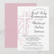 En söt vit och rosa första heligan inbjudan med ett vitt kor med rosa runt omkring.