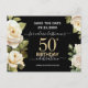 Vattenfärg med vita rosor till 50-års födelsedagsfest. Elegant blomsterdesign för födelsedagsfirande alla år.Lätt att anpassa med mall. Underbar malldesign för spara datum födelsedag.