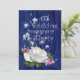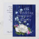 Naturligt vacker vit ros i full blomning i kombination med blåklockor och små rosa blommor på en mörkblå draperad bakgrund utstrålar firande vibrationer av kärlek för denna 45-årsdag festinbjudan med anpassningsbart år på framsidan. Namn och text kan också anpassas med hjälp av den tillhandahållna mallen. Originalfotografi och design av Anura Design Studio.