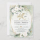 Vita rosor grönska eukalyptus guld vi gör fortfarande inbjudningar,