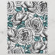 Vacker handmålad digital mönster, vita rosor med blå blad.