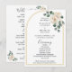 Guidar dina gäster genom de meningsfulla ögonblicken under din ceremoni med detta vackert designade bröllopsprogram inspirerat av ett vattenfärg vit ros trädgård bröllopstema. Designen presenterar ömtåliga vita rosblommor i par med mjuk grönska arrangerade längs en graciös minimal blomster guldbåge ram, vilket skapar en raffinerad botanisk accent som känns romantisk och tidlös. Den eleganta blomsterkonsten speglar en mjuk botanisk romantisk tidlös bröllopsestetik, vilket ger en graciös och sofistikerad touch till din ceremoni pappersvaror.