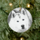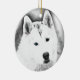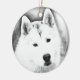 Vita Siberian husky med blå Öga Fine Art Sketch Julgransprydnad Keramik