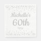 Elegant och modern vit med silver glitter-kvinnans 60:e födelsedagsfest pappra servetter personlig med namn och ålder. All text är anpassade.