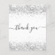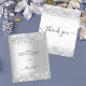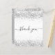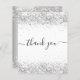 På framsidan: en vit bakgrund för chicen. Med faux silver glitter, gnistor. På framsidan av stora bokstäver och texten: Tack. Baksida: Faux silver tittar bakgrund och faux sparkles. Anpassa och lägg till tackkort och namn. Namn är skrivet med ett modernt handskript i stil med dekorationer. Om du bara vill behålla utslagen tar du bort exemplet namn lämnar du blankstegen eller symbolerna framför och efter namn.