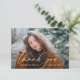 studenten tack för det enkla, vita skriptet för elegant med ett fotokort
