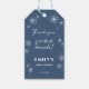 Vita snöflingor Blå Bebis Shower Presentetikett