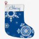Den vita snöflingor blå julstrumpan kommer att vara det perfekta tillskottet till din juldekoration. Designen visar vita snöflingor spridda över en blå bakgrund, med ett namn på den vita toppen av strumpan. Anpassa namnet efter önskemål. Gör också en bra present. Kolla in den matchande trädskärmen och mer!