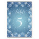 Vinterevenemang (bröllop, julfest, födelsedagsfest, möhippa) bordskort. Denna design har vita snöflingor på en blå bakgrund. Du kan ändra bordnumret efter dina behov (2, 5...7...10...) - varje gång ett nytt kort, och lägg till alla dessa kort i din varukorg.