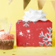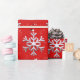 En elegant julomslutning med papper design med vit snöflingor och stjärnor som ställs mot en röd, festlig bakgrund.