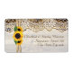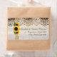 Vita snöre, band och solblommor på trä bröllop fraktsedel