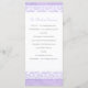 Dubbla, vit snöre på en blommigt lila på arbetsytan, förbättrar bröllopsprogrammet för bakgrundsljus. Lila med vit snöre bröllop stationär uppsättning. Redigera det här bröllopsprogrammet med ditt eget namn, data, ceremonins ordalydelse, bröllopsfestens assistenter och tack. Ett enkelt program för elegant ersätter bara exempeltexten med bröllop-informationen. Det moderna programmet för ceremoni i lila bröllop, vitt och pastellpräglat. Konst och design av Sarah Trett via www.sarahtrett.com för www.mylittleeden.com