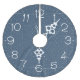 Vita stjärnor på dammig vinterblå bakgrund med vintage urtavla.