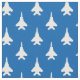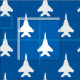 Perfekter för privata hantverksprojekt, projekt för att samla in pengar från skjortor, påsar för kostym och party, en mönster av strejka örlkombattant jet i vitt på blått, gör detta nätverk till ett underbart val för varje militärt eller luftfartsteman som du kan drömma om.