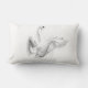 En kudde som visar vit svan med mycket rät vingar