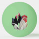 Bild är ett vitt speglat tupp med sina två svarta höns.