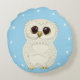 Vita Uggla och stjärnor på ljusblå blått Rund Kudde