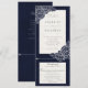Blommiga vita handritade vallmor på navyblå texturerad bakgrund bröllopsinbjudan kombination.