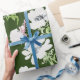 Vita vattenfärgade anemonblommor på grönten presentpapper