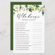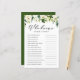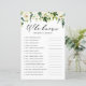 Vem känner mamma bäst? Svara på dessa frågor för att få reda på det! | Lägg till den här roligten och det här spelkortet för babyduschspel till evenemanget. Det här anpassadet "Vem känner till Mamma Best"-spelkortet innehåller vattenfärgade illustrationer av vita blommor och grönska. Anpassa genom att lägga till dina frågor. Den här vita blommigten-babyduschkortet är perfekt för vinter- och vår-babyduschar och baby party.