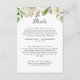 Det här vita vinterpionens blomsterbröllop detljinkluderingkort är perfekt för ett modernt bröllop. Designen har vackra handritade vita pioner samlade i snygga buketter med burgunderknoppar och gröna blad.