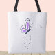 Låt din stil flyga med den här charmerande vita tote-väskan med vit lila och vita fjärilar - en symbol för omvandling, ljushet och skönhet i vardagen. Spaciös och mångsidig, det är perfekt för ärenden, bokar, eller att bara ha lite glädje med dig. Lägg till ett eget namn för att göra det helt till din egen eller skapa en tankfull, upplyftande gåva till en vän som kan använda något vackert. Behandla dig själv eller någon speciell - du förtjänar båda lite stollig.