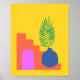 Vitaktiga Boho botaniska former i Bright Gult Poster