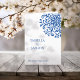 Fira din speciella dag med en smula elegans och sofistikering med vår unika och designade bröllopsinbjudan. Med en pristinvit bakgrund som är försedd med en meriserande blå rotationssymmetri mönster i dekorationer och prickar skapar upp ett blommande mönster, fångar denna inbjudan på ett vackert sätt det innersta av tidlös romantik och modern charm. Denna inbjudan är perfekt för par att hitta en blandning av contemporary och klassiskt elegans, som anger tonen för ett bröllop som kommer att bli ihågkommet för dess skönhet och ära. Ordna er i dag och se till att ert uttalande från bröllop verkligen blir oförglömligt!