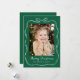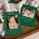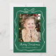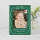 Fira säsongen med detta Whimsical Hand- Drawn White Bow Ram 2 Photo Helgdag Card. Bilden ramas in av en vit konturlinje gräns med en båge överst, som ställs in mot en fetstilt grönt bakgrund. "God jul" visas i ett handskrivet vitt skript med din familj namn under. Baksidan innehåller utrymme för ett andra foto och ditt personliga helgdag-meddelande. skapar det här ett festligt och minnesvärt julkort.