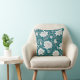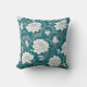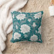 Vitt orientalt blommönster på tealbakgrunden dekorativ kudde.