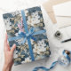 Den fantastiska boho-vinterkonstruktionen säsong för att slå in pappra egenskaper, grönt med vattenfärg pastel, blå och vita vinterblommor. En underbar varsam design för alla vinterpresenter i firande. Violetta utskrifter ©
